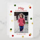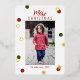 Carte de vœux de Noël personnalisée moderne avec police calligraphique élégante et feuille d'or véritable, points verts et rouges. Téléchargez votre photo préférée.