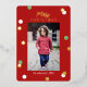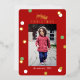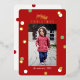 Carte de vœux de Noël moderne et personnalisée avec une police calligraphique élégante et véritable feuille d'or, points verts et blancs. Téléchargez votre photo préférée.