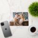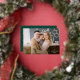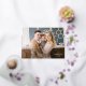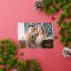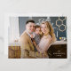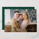 Elégante carte de vacances affichant votre photo horizontale fond de sang avec "Joyeux Noël" en papier doré moderne. Personnalisez l'avant de la carte de Noël en feuille d'or en ajoutant votre nom et l'année. L'élégante carte de vacances inverse pour afficher un motif en treillis blanc contre un arrière - plan vert foncé ou la couleur de votre choix.