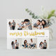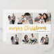 Une simple carte de Noël avec six photos avec un script pressé en feuille d'or joyeux lettrage main de Noël. L'arrière - plan, la feuille et la couleur de police sont entièrement personnalisables pour correspondre facilement au jeu de couleurs de vos photos. Cliquez sur le bouton Modifier pour customiser cette conception.