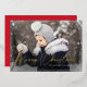 Envoyez des salutations joyeuses avec ce carte photo de Noël Joyeux et moderne avec votre photo horizontale préférée encadrée de délicats flocons de neige. "Joyeux Noël" est affiché dans un élégant script en feuille d’or avec le nom de votre famille indiqué ci-dessous. L'arrière comprend un arrière - plan rouge festif avec des points de neige blancs, ou vous pouvez customiser la couleur selon votre style. Un design de vacances simple mais élégant parfait pour les cartes de Noël.