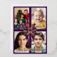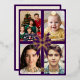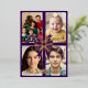 Cette élégante carte de Noël violet comporte un arc avant en feuille d'or avec quatre photos de la famille et un message central "Joyeux Noël" sur le dos. Tout le texte est personnalisable et facile à modifier. Les couleurs sont également modifiables dans l'outil de conception.