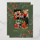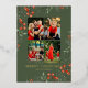 Joyeux Noël Photo Collage Aquarelle Floral Foil Carte de vacances Foil Stamped Christmas Cards présente un collage photo de quatre de vos photos préférées avec le texte en feuille superposition "Joyeux Noël" dans la typographie script de calligraphie moderne sur un arrière - plan vert accentué de l'aquarelle verdure d'hiver et des baies rouges. Personnalisez vos noms ou texte personnalisé ci-dessous. Parfait pour les familles et les amis pour célébrer Noël et les fêtes. Conçu par ©2025 Evco Studio www.zazzle.com/store/evcostudio