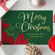 Cette belle carte fleurie poinsettia présente une calligraphie blanche élégante qui lit Joyeux Noël à travers l'arrière - plan vert festif. Customisez ces cartes chic que votre entreprise peut envoyer à ses clients d'affaires et à ses collègues d'entreprise. Personnalisé avec votre texte professionnel à l'avant et à l'intérieur.