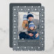 élégant style de feuille argent réel pour les vacances et Noël. Cette simple carte photo de Noël est dotée d'un fond de saignement complet avec une bordure blanche. Un accueil de Noël rustique moderne et branché sur le côté avant convient à 1 Photo. Ce design comprend un Noël Flambeau de neige argent hiver, photo de famille 1 une image, photo cartes de Noël, classique design d'hiver traditionnel, élégant minimaliste minimaliste minimaliste minimaliste, script de calligraphie design, typographie fantaisie texte de police, joyeux citation de Noël dire simple, gris argenté bleu clair simple floraison, Noël carte de voeux