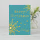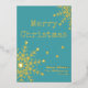 Célébrez la saison festive avec cette carte de vœux de Noël minimaliste dorée et turquoise avec un message de Noël personnalisable et le nom de votre famille. C'est un design simple et magnifique avec des flocons de neige dorés et une pluie d'étoiles. Le verso présente un cadre à bandes diagonales et un espace pour votre propre message et vos prénoms. La police de machine à écrire donne à ce design une élégance décontractée et la police du message est grasse et visible. Convient pour une utilisation personnelle et professionnelle. Profitez de vos fêtes !