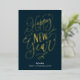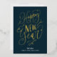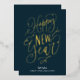 Joyeux Jour de l'An Bleu Gold Script Moderne Entreprise Non Photo Real Foil Carte de vacances. Envoyez des voeux de vacances avec des photos à vos proches avec cette carte de vacances Foil moderne et festive. Tous les textes sont pré-arrangés pour que vous personnalisiez facilement et rapidement avec vos propres détails. Joyeuses fêtes !