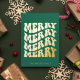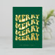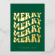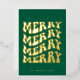 Merry Merry Merry Merry Christmas Card : un design rétro, avec une typographie vintage ondulée en feuille d'or et un arrière - plan vert.