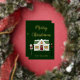 Donnez à vos proches une belle carte de vacances pour Noël cette année. Cette carte de Noël présente "Joyeux Noël" écrit dans de belles lettres en feuille d'or. Il y a une maison enneigée dans l'arrière - plan avec le nom de votre famille au fond, également en papier d'aluminium. L'arrière - plan est vert, commandez votre feuille de Noël dès aujourd'hui!