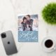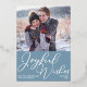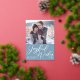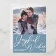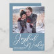 Apportez des voeux de joie à vos amis et votre famille cette saison de vacances avec cette belle photo verticale audacieuse carte de Noël en feuille d'argent. Simple script cursif sur un joli arrière - plan bleu ardoise sous votre photo de famille. Une carte de vacances chic et moderne avec une photo de votre famille.
