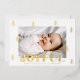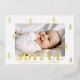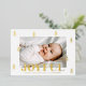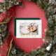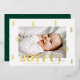 Célébrez les fêtes avec cette carte de Noël photo festive avec votre photo horizontale encadrée par des pins à feuille d'or dessinés à la main sur un arrière - plan blanc immaculé. Le mot "Joyful" est affiché en gras feuille d'or, accompagné de votre salutation de vacances personnalisée et du nom de famille ci-dessous. Le dos présente une photo supplémentaire contre un arrière - plan vert d'épinette avec des points blancs subtils, ce qui fait de cette carte de vacances en feuille personnalisée une belle façon de partager des souhaits saisonniers chaleureux.