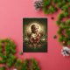 Un portrait sacré d'un enfant Jésus vêtu de rouge, les mains jointes en prière silencieuse sous une auréole radieuse. Entourée de branches de sapin et d'une lueur céleste, cette carte évoque le silence des nuits saintes et la chaleur de la présence divine. Embossée en feuille d'or et encadrée avec révérence, c'est un souvenir pour ceux qui chérissent la lumière, l'innocence et le cœur sacré de la saison