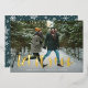 Festive vacances carte photo présente votre photo horizontale ou paysagère préférée en fond saigné, avec "laissez-le neiger" recouvert de feuille d'or et de typographie de brosse lettrée. Personnalisez l'avant de la carte avec vos noms et un court message de vacances.