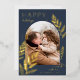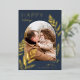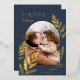 Un design chic et élégant de carte de vacances avec une seule photo verticale ou portrait dans un agencement unique voûté, agrémenté d'un feuillage botanique finement détaillé en feuille d'or. "Joyeuses fêtes" apparaît en haut à gauche, avec votre nom de famille en bas à droite. Un choix raffiné d'inspiration nature pour vos voeux de Noël 2022.