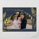 Un design chic et élégant de carte de vacances avec une seule photo horizontale ou paysagère dans un agencement unique voûté, agrémenté d'un feuillage botanique finement détaillé dans une feuille d'or luxueuse. "Joyeuses fêtes" apparaît en haut à gauche, avec votre nom de famille en bas. Un choix raffiné d'inspiration nature pour vos voeux de Noël 2022.