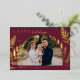 Un design chic et élégant de carte de vacances avec une seule photo horizontale ou paysagère dans un agencement unique voûté, agrémenté d'un feuillage botanique finement détaillé dans une feuille d'or luxueuse. "Joyeuses fêtes" apparaît en haut à gauche, avec votre nom de famille en bas. Un choix raffiné d'inspiration nature pour vos voeux de Noël 2022.