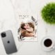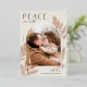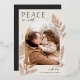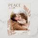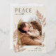 Un design chic et élégant de carte de vacances avec une seule photo verticale ou portrait dans un agencement unique voûté, agrémenté d'un feuillage botanique finement détaillé en feuille d'or. "Paix sur Terre" apparaît en haut à gauche, avec votre nom de famille en bas à droite. Un choix raffiné d'inspiration nature pour vos voeux de Noël 2022.