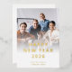 Logo Photo Entreprise Code QR Bonne année 2026. Une touche de papier d'aluminium pour votre entreprise vous salue avec les mots sur le devant en or, argent ou or rose. Personnalisez facilement avec votre nom et remplacez l'exemple d'image par votre propre équipe. Remplacez l'exemple de code QR au dos de votre propre menant à votre site Web d'entreprise et ajoutez également votre logo. Vous pouvez modifier plus loin pour supprimer les éléments non requis et modifier les polices, la taille du texte des couleurs, etc.