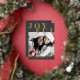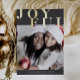 LOTTIE Grey Foil Photo Simple Joyful Christmas Foil Carte de vacances. Personnalisez l'avant de la carte avec une photo, votre nom de famille et l'année. Personnalisez le dos avec un accueil de vacances ou des nouvelles de famille en option, et votre nom de famille.