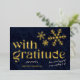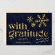 Dites merci à vos fidèles clients de cette saison de vacances avec cette simple et moderne élégante carte de vacances "Avec gratitude" foil affaires. Comprend des flocons de neige en feuille sur un arrière - plan de la marine. Personnalisez avec votre salutation de vacances personnalisée et envoyez et ajoutez votre nom d'entreprise en feuille pour une finition élégante. La typographie moderne unique ajoute une touche de luxe qui convient à la fois aux entreprises de Noël et aux petites entreprises.