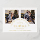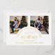Romantic 2 Photos Collage in Real Gold Metallic Foil Holiday Card with Envelope as a Wedding Save the Date Card.