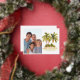 Étendez la joie des vacances tropicales avec cette carte horizontale de Noël avec votre photo de famille préférée à côté d'une charmante illustration de palmier. Sous la scène festive se trouve la feuille d'or hawaïenne saluant "Mele Kalikimaka" et votre nom de famille personnalisé. Parfait pour envoyer des vibes chaudes d'île à des proches proches.