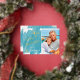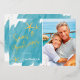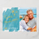 La conception de carte de vœux à motif feuille métallique Seas & Greetings minimaliste de Nautical Boutique Co. présente une typographie moderne de style écriture manuscrite, votre photo de portrait préférée (ratio 5x7), et des accents d'étoiles de mer aquarelles pour un thème de vacances de plage tropicale amusant. Le design est posé sur un fond de lavis aquarelle sarcelle aqua. #SeasAndGreetings #HolidayCards #TropicalHolidays