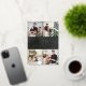 A stylish real gold foil 4 photo collage holiday design for you to personalize with your favorite photos, message, names and year on a chalkboard background. The reverse features falling snowflakes on a matching chalkboard background. Designed by Thisisnotme©
