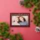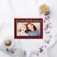 Design is composed of red and black plaid/tartan pattern. Add a custom photo of you with the rest of your family. The photo is adorned above with unique gold greetings.