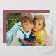Élégant carte photo de vacances dispose d'un portrait paysager de famille à fond de sang avec un cadre de bordure en feuille d'or décoratif simple d'étoiles brillantes. Inclut "Paix, Amour & Joyeux Tout" salutation dans l'écriture classique qui peut être customisé. 2 photos bonus carrés et un message habillent le dos de la carte. La couleur arrière - plan rose du vin sur le dos peut être modifiée pour être coordonnée avec vos photos.