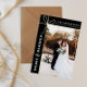 Partagez le cadeau de bonheur conjugal avec une carte de Noël de mariage "Merry & Married" ! Mettez en valeur vos photos du jour du mariage, nouées avec un simple nœud de cadeau. Ajoutez votre nouveau nom de famille marié et l'année où vous vous êtes mariés. La façon parfaite de partager vos photos mémorables de votre journée spéciale pendant la période des fêtes. Terminez votre carte de Noël de remerciement avec un message personnalisé à vos invités.