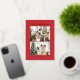 Carte De Vœux En Aluminium Minimal 3 Photo Collage Merry Christmas Red Gold