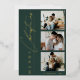 Carte De Vœux En Aluminium Modern 3 Photo Minimalist Green Christmas Script