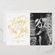 Celebrate the New Year in style with this customizable gold foil Happy New Year card, featuring modern calligraphy paired with beautiful greenery accents. You can easily personalize the card with your own photos, names, and a message. This elegant new year card makes the perfect greeting for friends, family, or colleagues to start the year off right. Whether you want a personal touch for a loved one or a unique card to share with your circle, this card is designed to make a lasting impression.