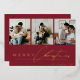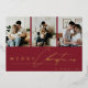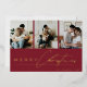 Carte De Vœux En Aluminium Modern Script 3 Photo Collage Red Merry Christmas