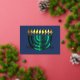 Carte De Vœux En Aluminium Moderne Abstrait Menorah Green