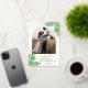 Carte de vacances en papier métallisé avec arche botanique moderne et photo de verdure