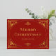Ces cartes de vacances glamour présentent une touche moderne de l'art déco classique. Un cadre géométrique en orné d'or et des ornements décorent un fond rouge festif élégant pour un look de vacances dramatique et vintage. La typographie dorée classique dit «Joyeux Noël».