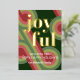 Carte de voeux de Noël classique contemporaine avec motif abstrait de couleur vert clair et foncé, rose et rouge, avec véritable feuille d'or JOYFUL texte de souhait. Avec place pour customiser ou personnaliser le texte sur le devant, le nom de famille (ou les noms individuels) et un message de salutation de saison personnalisable à l'arrière de la carte.