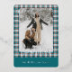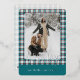 Cette carte de vacances se démarque par son design élégant et unique. Elle présente un vœu intemporel "Joyeuses Fêtes" imprimé en véritable feuille d'or, personnalisable selon vos préférences, sur un motif à carreaux bleu sarcelle, blanc et rouge marron. Le devant offre un espace pour le nom de votre famille, une photo et un vœu saisonnier personnalisé, tandis que le verso est parfait pour ajouter un message saisonnier personnalisé ou un poème. C'est une façon élégante d'envoyer vos vœux de vacances.