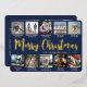 Envoyez des voeux élégants et partagez 11 de vos photos préférées avec un collage photo personnalisé carte de vacances bleu marine et feuille d'or. Tout le texte sur ce modèle est simple à personnaliser pour inclure n'importe quel libellé, comme Joyeux Noël, Joyeux Fêtes, Joyeuses Fêtes, Jour de l'An.. (CONSEIL EN MATIÈRE DE PLACEMENT DE L'IMAGE : Une façon simple de centrer une photo exactement comment vous voulez est de la rogner avant de la télécharger sur le site Zazzle.) Le côté avant de la carte est imprimé avec de la feuille d'or métallique sur un arrière - plan sombre et bleu foncé. Le design minimaliste moderne comprend également une calligraphie manuscrite à la mode, un message de typographie simple sur le dos et une grille photo unique de onze images carrés avec légendes. Famille et amis adoreront présenter cette carte élégante customisée.