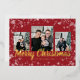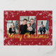 Carte de vacances Red Christmas Foil. Cette élégante carte postale Joyeux Noël présente un cadre festif recouvert de flocons de neige blancs avec une véritable feuille d'or sur un arrière - plan rouge avec un montage photo de 3 images. Le dos comprend une 4ème photo et un texte supplémentaire pour la personnalisation. Trouvez les articles correspondants dans la collection Flambeaux de Noël.