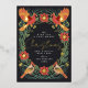 Envoyez vos vœux à vos proches avec une carte de Noël joyeux avec un design élégant avec des oiseaux cardinaux, des poinsettias et du feuillage sur fond noir. Fond de page de couverture fourni par Freepik.