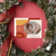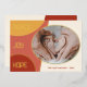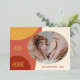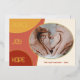 Unique, classique, tendance, jolie et décorative Carte de vacances. Avec le texte PEACE HOPE JOY classe, et la place de customiser ou de personnaliser avec un nom de famille ou des noms individuels, et une photo de votre choix sur la moutarde ocre jaune, corail foncé et clair circles de feuille d'or motif.