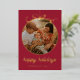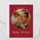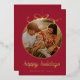 Carte de vacances Dark Red Whimsical Ornement & Bow Photo Foil - tout le texte est modifiable