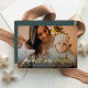 "Paix sur Terre" apparaît dans le script de calligraphie de feuille d'or en lettrage, superposé sur une photo horizontale ou orientée paysage. Customisez cette belle carte de Noël avec votre nom de famille et l'année le long du fond.