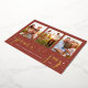 Simple et chic "Peace and Joy" carte photo de vacances comprend un collage de 3 photos de portrait sur une disposition horizontale de carte avec des étoiles scintillantes blanches et texte de script de calligraphie à lettrage manuel mignon et moderne avec accent du coeur dans une véritable feuille d'or. Personnalisez le message d'accueil, la signature de la famille et l'année sur le devant, et choisissez d'inclure un message supplémentaire au verso de la carte. Un espace photo paysager supplémentaire est inclus à l'arrière. Cinnabar couleur rouge arrière - plan peut être modifiée.