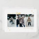 Modern Peace, Joy & Hope Gold Foil Typographie, 3 photo carte de vacances. Caractéristiques, étoiles en feuille d'or et support couleur rouge solide avec espace modèle pour votre message de vacances personnel.