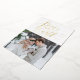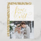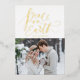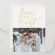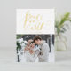 Elégante carte de Noël avec "Paix sur Terre" affichée en haut dans un script en feuille d'or écrit à la main avec votre nom et la photo affichée ci-dessous. Le dos de la carte de Noël en feuille d'or comporte un motif de branches de pin blanc et des points avec un arrière - plan or (ou la couleur de votre choix).