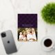 Élégant carte photo de vacances avec "Joyeux Noël" affiché dans un script de calligraphie de feuille d'or en haut du design sur un arrière - plan plaid violet peint. Personnalisez l'avant de la carte en ajoutant votre nom, votre année et une photo. La carte de Noël en feuille d'or revient pour afficher 2 photos supplémentaires sur un arrière - plan plaid assorti avec des points de neige blancs subtils. La carte de Noël multi-photo est parfaite pour afficher vos photos de famille préférées !